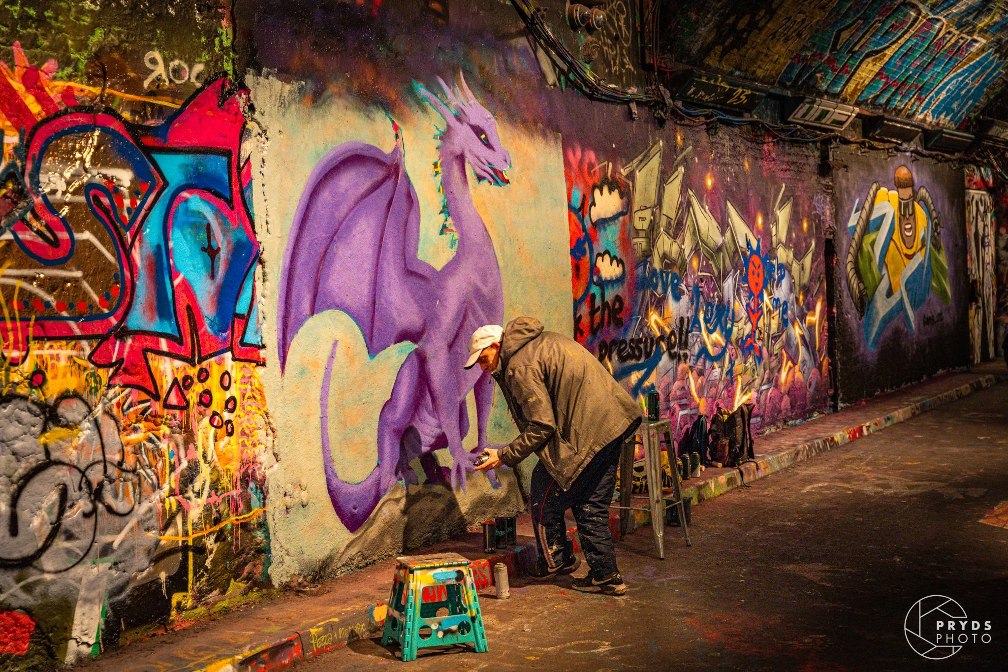 Next up Leake Street Arches, a tunnel under Waterloo station, where grafitti can be made, there are so much street art, it is just to walk around and explore, the smell of sweet tobacco and alcohol is a part.